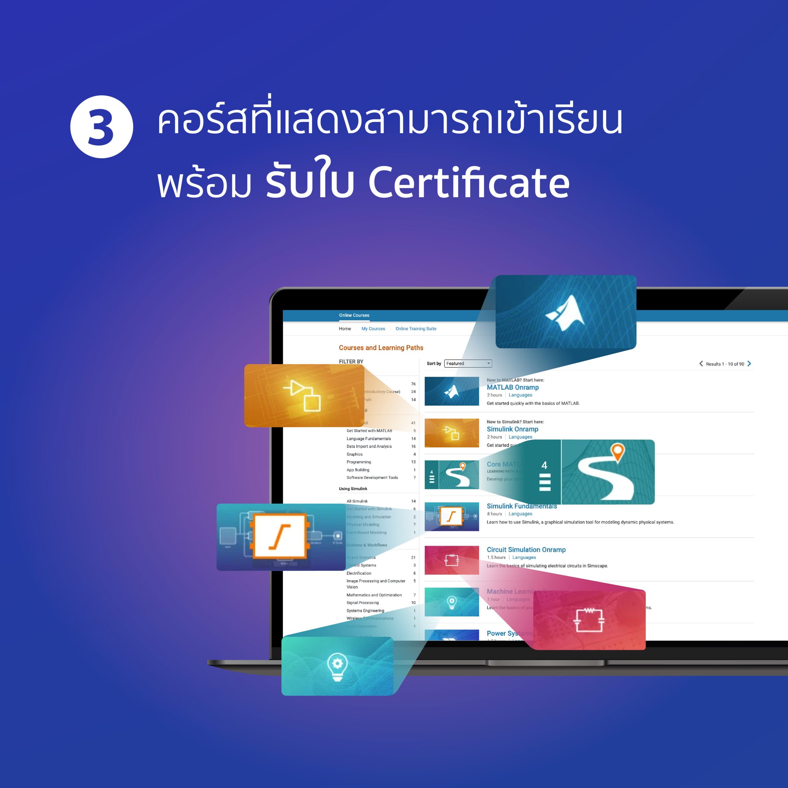 ICIT ร่วมกับ MathWorks มอบสิทธิพิเศษสำหรับบุคลากรและนักศึกษา มจพ. ทุกคน เข้าเรียนหลักสูตรออนไลน์ MATLAB และ Simulink ไม่มีค่าใช้จ่าย พร้อมรับใบประกาศนียบัตร (Certificate) หลังเรียนจบทุกหลักสูตร