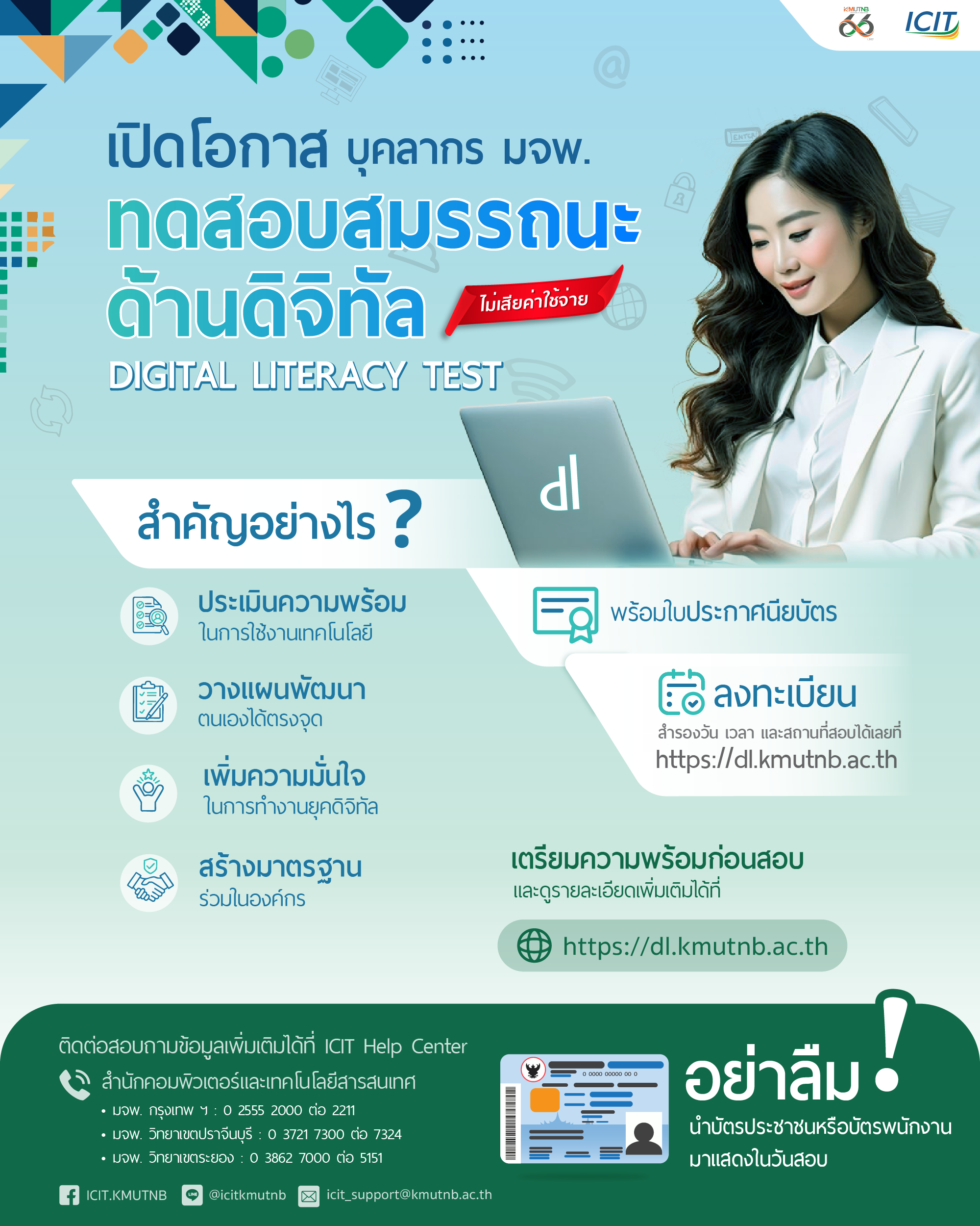 มจพ. เปิดโอกาส! ทดสอบสมรรถนะด้านดิจิทัล (Digital Literacy Test) ฟรี! สำหรับบุคลากร