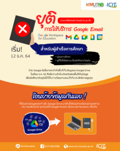 ยุติการให้บริการ Google mail สำหรับผู้ที่สำเร็จการศึกษา