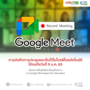การบันทึกการประชุมและเก็บไว้ในไดรฟ์โดยอัตโนมัติได้จนถึงวันที่ 9 ม.ค. 65