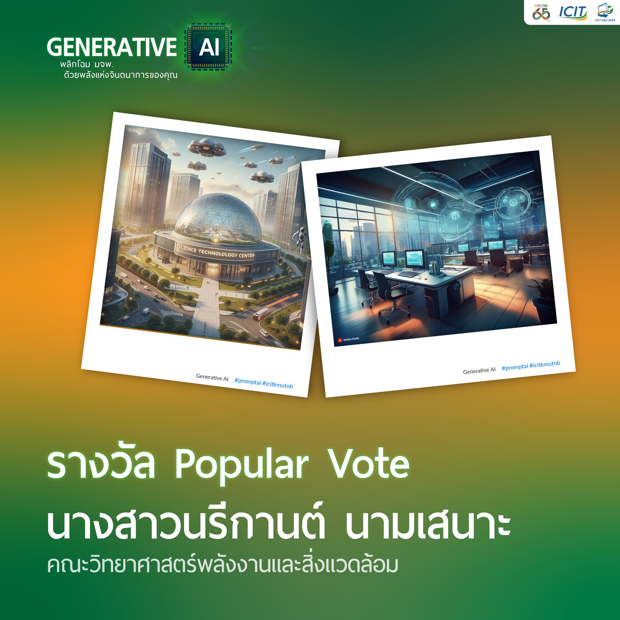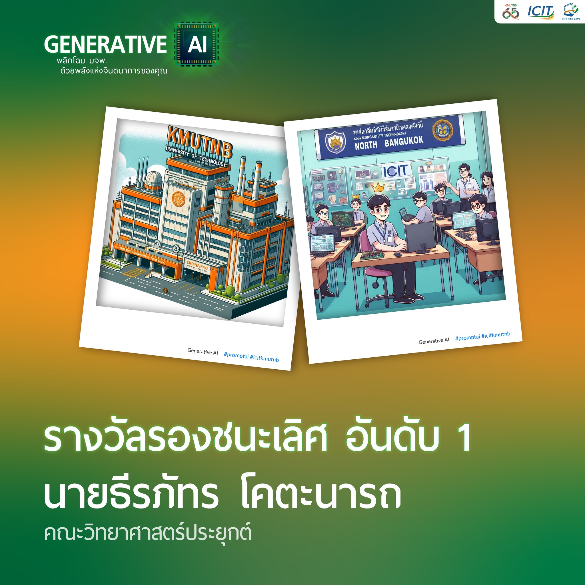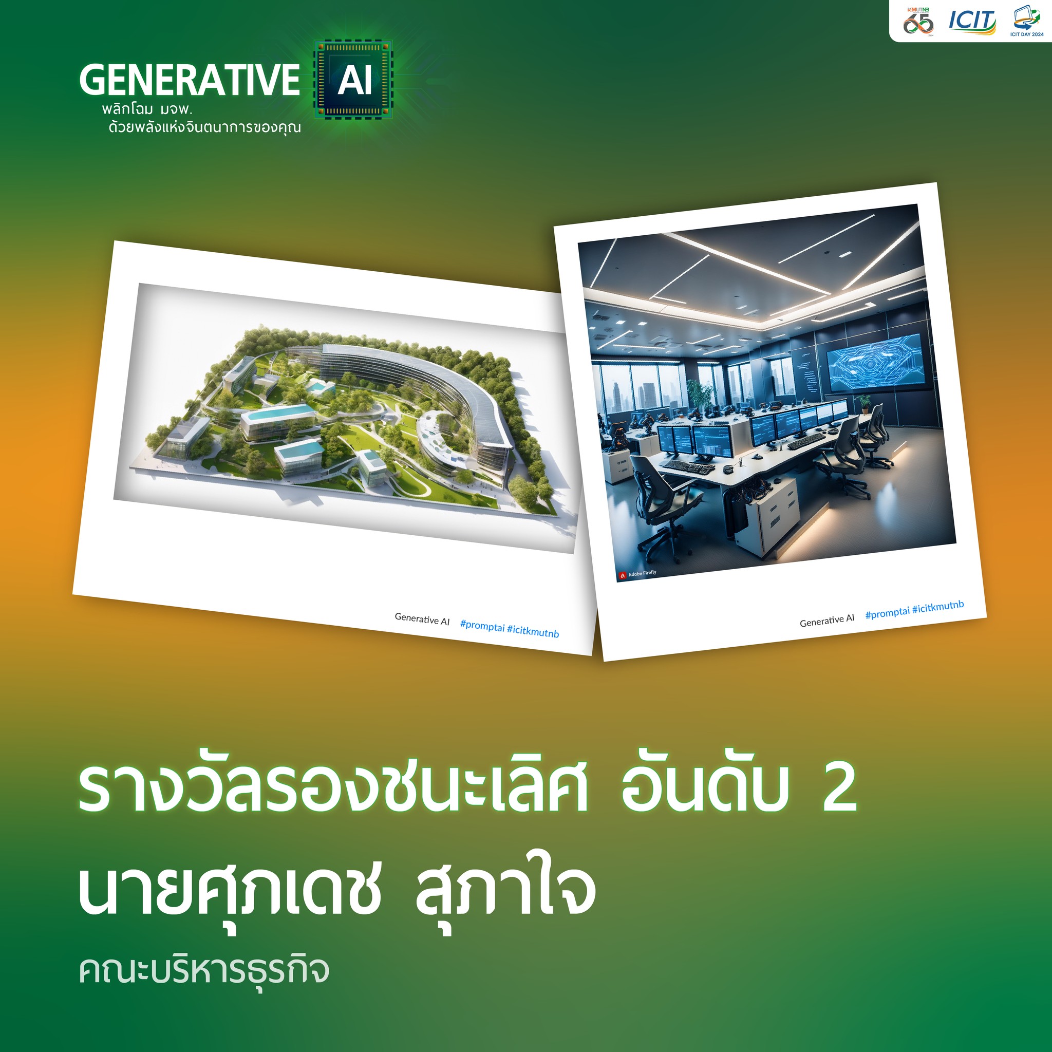 สำนักคอมพิวเตอร์ฯ จัดโครงการจัดการแข่งขันการเขียน Prompt AI ให้กับนักศึกษาของมหาวิทยาลัยเทคโนโลยีพระจอมเกล้าพระนครเหนือ เพื่อให้นักศึกษามีความรู้ ความเข้าใจทางด้านการเขียน Prompt AI นำทักษะพื้นฐานการเขียน Prompt AI สร้างนวัตกรรมที่น่าสนใจ เปิดประสบการณ์การเข้าร่วมแข่งขัน นำเสนอผลงาน โดยการเขียนคำสั่งที่ใช้สั่งให้เจนเนอร์เรทีฟ เอไอ ทำงานและประมวลผล ตามวัตถุประสงค์ที่ผู้เขียนต้องการ เช่นการสร้างภาพ หรือประมวลผลออกมาเป็นข้อความ