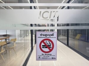 หนึ่งในมาตรการสำคัญภายใต้ “มาตรการด้านสภาพแวดล้อมและความปลอดภัย” ที่ สคท. ได้จัดทำขึ้น คือ “การจัดการควบคุมมลพิษทางอากาศจากการสูบบุหรี่” ซึ่งเป็นส่วนหนึ่งของความมุ่งมั่นในการรักษาสิ่งแวดล้อมและส่งเสริมสุขภาวะที่ดีภายในพื้นที่มหาวิทยาลัย